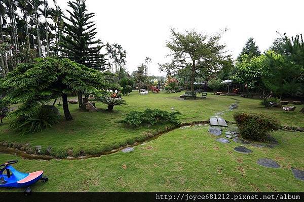 這民宿外面的庭院是不是很大又很棒,也有小孩最愛的玩沙池,胖達人拿著前一天在台南買的魚飼料要餵這裡的魚,但魚兒不賞臉的躲了起來,他非常失落地一直問我,為什麼魚都不吃他餵的飼料(真想告訴他,你也常常不吃我煮的飯啊!)