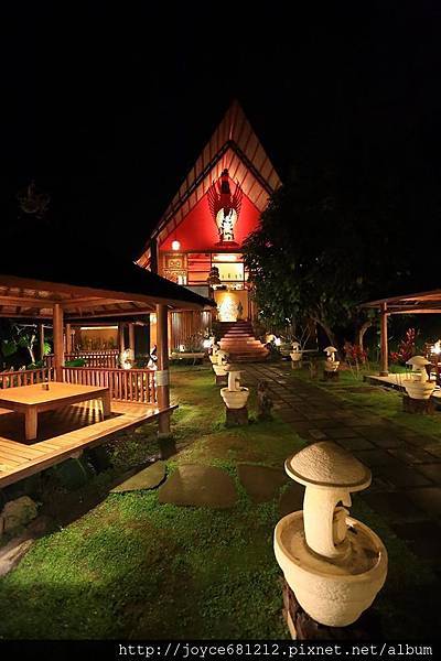 因為外面下著小雨,做完手拉胚就直接去烏布雨林餐廳吃晚餐,是在山裡面的產業道路上,跟著導航走,我們一度懷疑是不是弄錯了