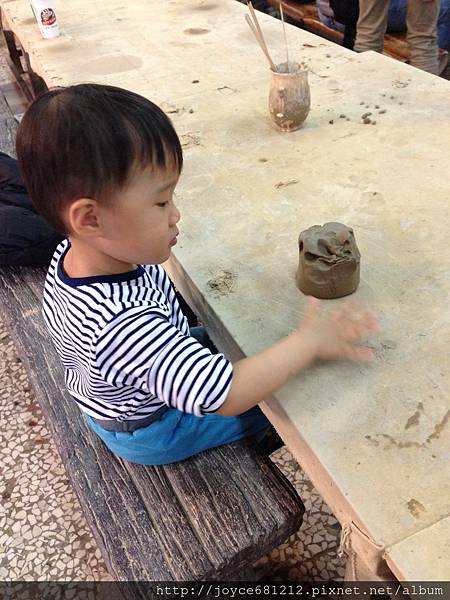 胖達人第一次看到手拉胚,眼神中充滿驚訝、內心則發出「好想做」的信號,胖媽感受到他的想望,立刻花了100元讓他也體驗捏陶土,不過他一直把陶土搓成長條狀說是麵條