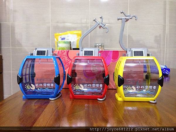 紀念品商店的纜車存錢筒,重要的東西總是會放在重要的位置,這三組一盒裝的禮盒就放在小孩身高伸手可及之處