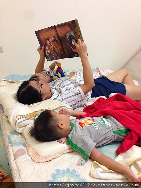 我們家因為都是兩位少爺一起聽故事,胖媽大部分還是用照本宣科的方式唸,頂多米寶在旁邊指著某個圖案喔喔喔時,會特地用小寶寶的方式告訴他那是什麼,這頁圖案裡面有三隻熊,對於熊媽媽的角色我印象中只說了一次,但昨天我照著字唸完之後,問米寶熊媽媽在哪裡?他卻可以正確的指出來(再次印證小小孩的觀察力驚人),然後我和哥哥開心地幫他拍手,他自己也閃著發亮的眼睛高興的拍手,躺在我身邊,繼續聽完後面全部的故事,簡單的說故事,讓我們三人昨天晚上非常有愛的進入夢鄉。(那個因為被誇獎而閃著發亮眼神,也開心的為自己拍手的表情,深深烙印在胖媽的腦海中,這也就是為什麼胖媽總是感覺幸福的原因)