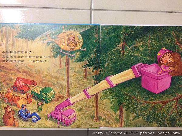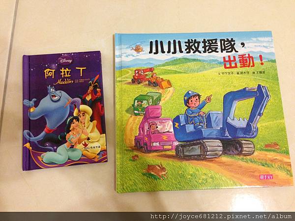 小小救援隊來我家不到15天,但被唸了快10次,有天胖媽覺得一直唸一樣的書很煩,就拿了阿拉丁出來唸,一開始胖達人坐在一旁大吵說他不要聽阿拉丁,手則一邊翻著他心愛的救援隊,但我繼續唸我的阿拉丁,過一會,他就用眼睛偷瞄我的阿拉丁,最後他躺到我身旁把整個故事聽完,再次證明只要故事夠吸引人、只要父母的耐心超過孩子,沒有孩子不愛聽故事的。這個道理同樣也可以用在一起幫差兩歲的孩子唸故事書,雖然我照本宣科的唸給胖達人聽,1.5歲的米寶不到5分鐘就會離開,但我持續地唸,他時不時就會跑過來指一下書裡面的圖案,我在適時的給予回應,米寶乖乖躺在一旁一起聽故事的時間,自然而然就增加了。