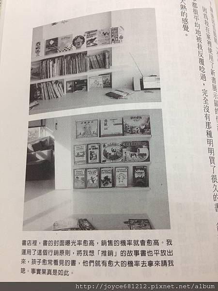 「我選故事書的原則永遠不會改變:如果自己一看就不喜歡或是覺得內容不夠好,誰推薦的都沒用。我會馬上放下,堅定而有信心。有時候,太執著於別人的推薦,反而會讓自己綁手綁腳的。相信自己的直覺,常常就是最好的選擇。唸故事書是一種父母與孩子之間的互動,我們藉由故事引發出來對生命的感動,讓父母與孩子的心靈連結在一起。如果自己都無法認同的故事書,要如何愉快地、而且持之以恆地唸給孩子聽呢?」