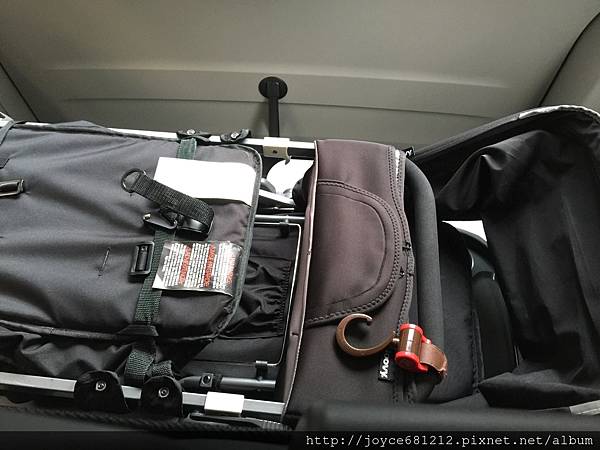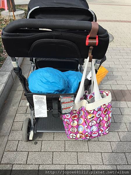 這個置物的勾勾就是「出租雙人推車二款Joovy Caboose Ultralight及TinyWorld」自己幫大家放的了,這個吊勾跟著我們11天,買的東西全部靠它幫忙了,因為這款推車的置物空間正好被後座小孩的腳佔據,連放個下雨用的透明塑膠套都嫌擠,黃小姐很細心的幫每個使用者附加這個勾勾,減輕大家的負擔,