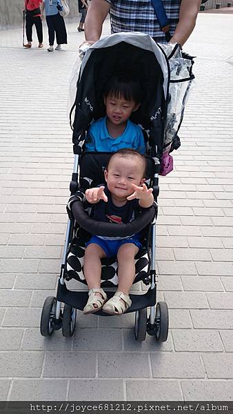 雨罩雖然可以拆下來,但我們去臺北這天,早上下雨中午過後又出大太陽,所以就留著了,不過也因此每次要抱哥哥下車的時候非常的麻煩(雨罩的存在會有點卡卡),