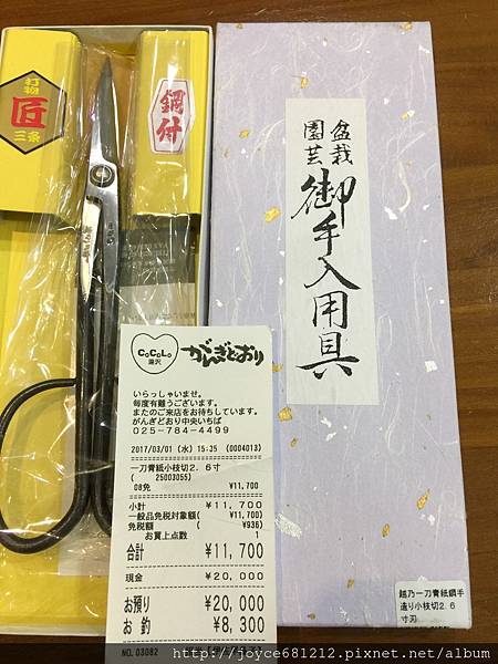 首先登場是這個令人匪夷所思的園藝剪,ㄚ胖爸今年度的最新興趣是盆栽,常常在youtube上看人家修剪盆栽,在越後湯澤車站看到賣刀具的商店,便流連忘返,終於搜尋到眼睛為之一亮的戰利品,看到價格之後,胖媽極度懷疑他只是為了要和下面的porter包較勁而已